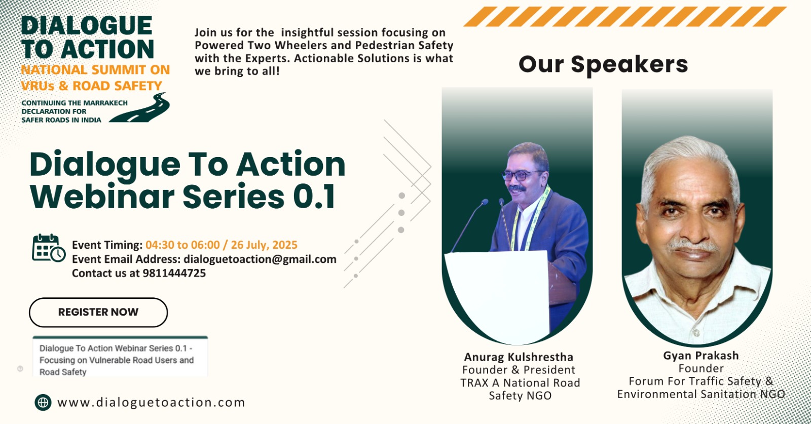 In 2023, India recorded approximately 1.72 lakh road fatalities and 4.63 lakh injuries, with Vulnerable Road Users (VRUs) — primarily two-wheeler riders and pedestrians — bearing the brunt. Two-wheeler users alone accounted for about 44.8% of all deaths (around 77,000), with nearly 54,000 of these linked to the non-use of helmets. Pedestrians contributed to nearly 20% of fatalities, approximately 35,000 deaths. Collectively, these two groups represented around 65% of total road fatalities, highlighting the urgent need for targeted safety interventions. This summit represents a watershed moment in our nation's approach to this critical public safety issue, bringing together key stakeholders. This conference is a step ahead to find way forward to achieve the objectives of The Marrakech Declaration in road safety scenario in India context.